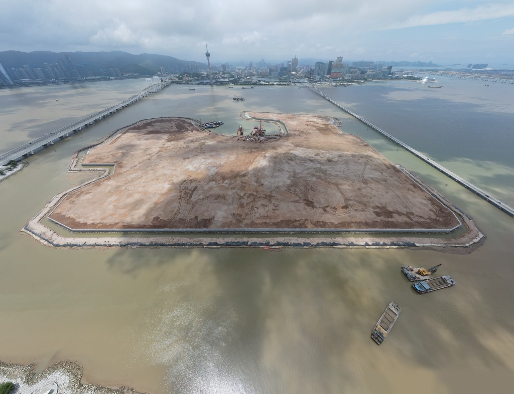 因工期延誤而引致的罰款程序正進行中,C區填土及堤堰工作已於5月完成,現正進行臨時堤的拆除及清淤復完工作。基於新城C區填海剛完成,需時自然沉降,暫未有連接規劃及建設時間表。資訊來源:建設發展辦公室