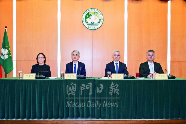 政府昨日下午五時在政府總部舉行關於衛星場過渡期後相關安排的新聞發佈會,行政法務司司長張永春、經濟財政司司長戴建業、博監局長吳惠嫻、勞工局長陳元童出席。