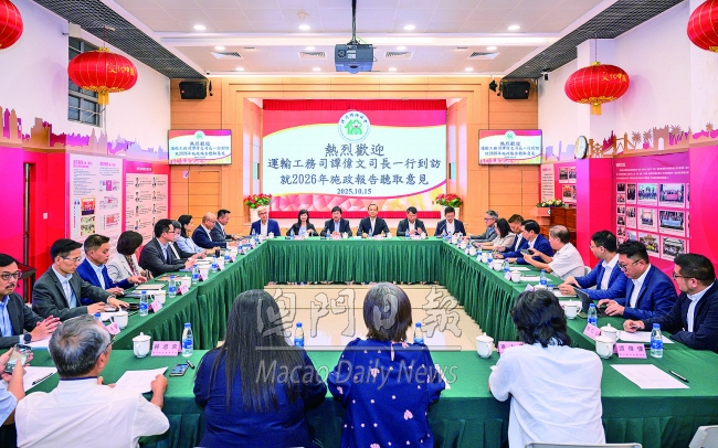 【本報消息】運輸工務司司長辦公室訊:運輸工務司司長譚偉文近日率領轄下多個部門的領導,先後拜訪澳門福建同鄉總會及民眾建澳聯盟、澳門中華教育會、澳門青年聯合會、澳門中華總商會、澳門街坊會聯合總會、澳門婦女聯合總會、澳門工會聯合總會、澳門歸僑總會,與各社團代表舉行座談,聽取和收集對運輸工務範疇二〇二六年施政工作的意見和建議。