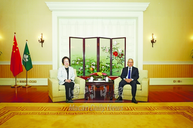 行政長官辦公室主任陳格;澳門日報讀者公益基金會副會長陸波、飛安達、許建章、區榮智,理事長黃國勝,常務副理事長何凱玲、鄺鍵濠參與會面。