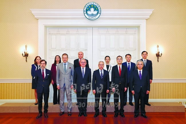 【本報消息】新聞局訊:行政長官岑浩輝昨日在政府總部與葡萄牙議會外事委員會主席若澤 · 塞薩里奧(José Cesário)一行會面,雙方就加強澳門與葡萄牙交流合作等議題交換意見。